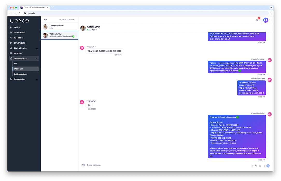 Owner Notifications by WorCo is a smart notification system for rental businesses that delivers important events directly to business owners or relevant staff via Telegram and WhatsApp. Without constantly opening CRM, calendars, or dashboards.